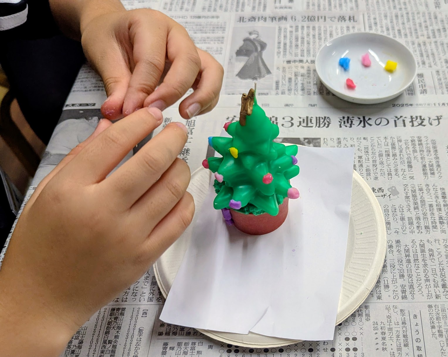 クリスマスシーズンに先駆けて、ツリー型のキャンドルを作りました。