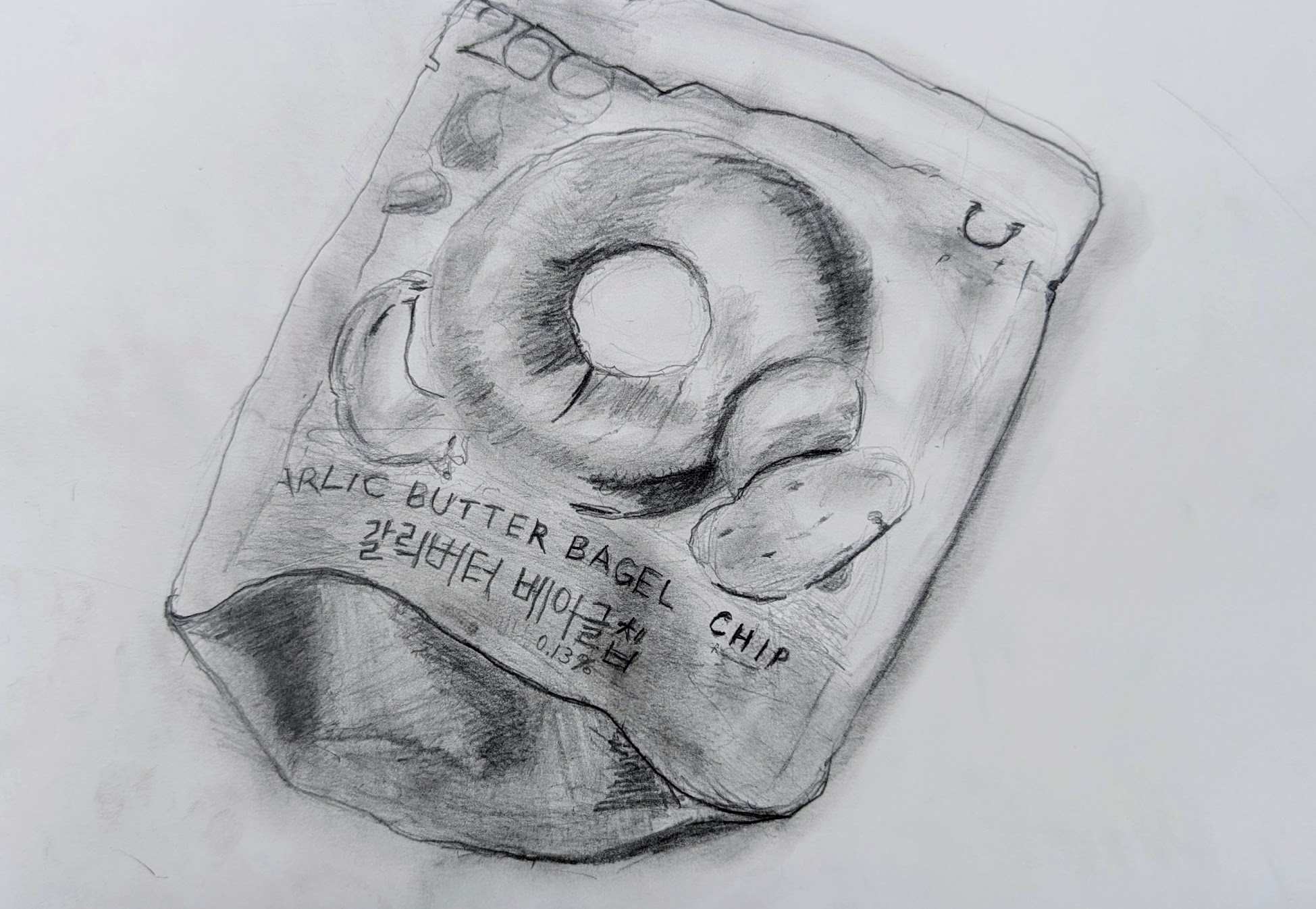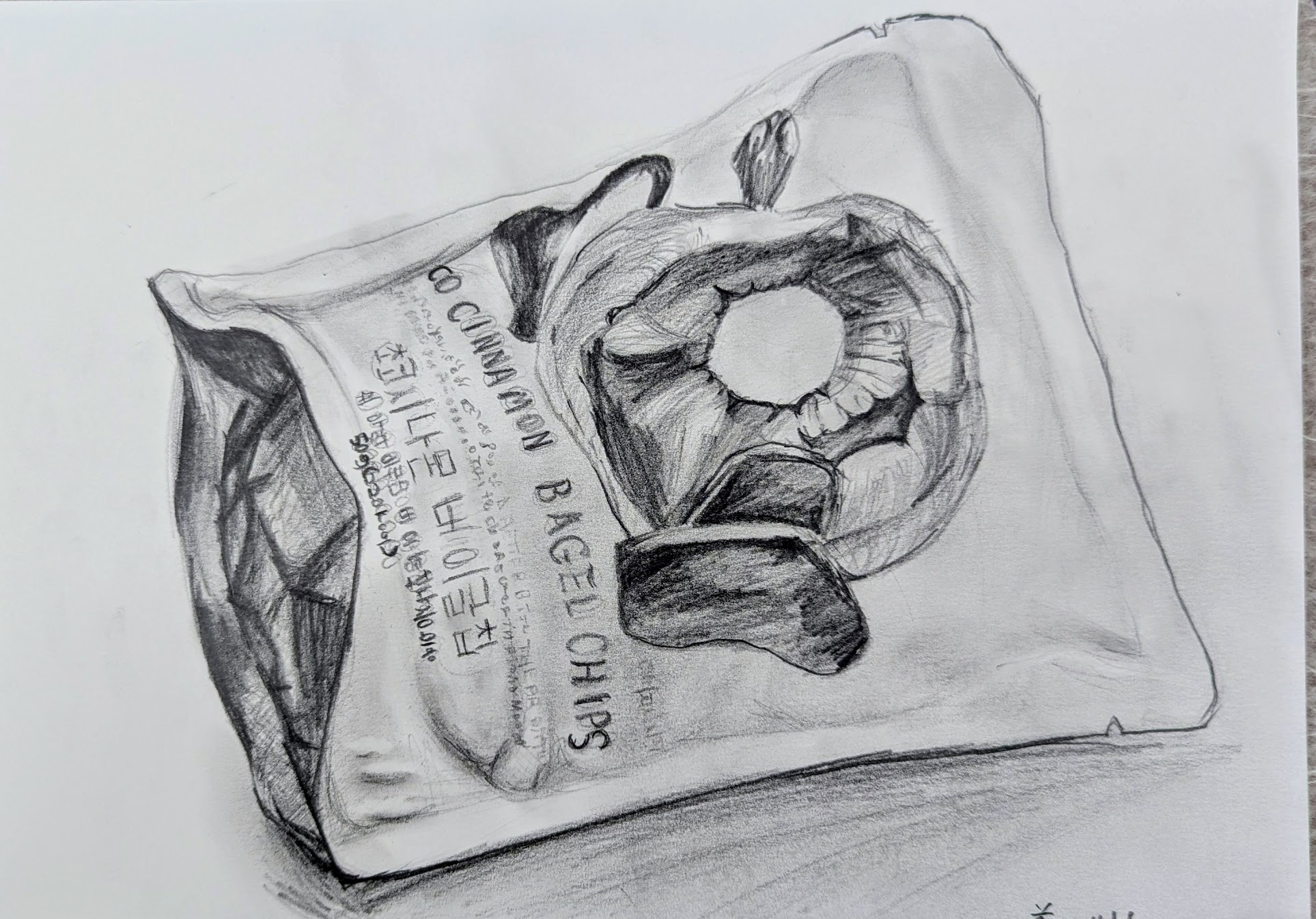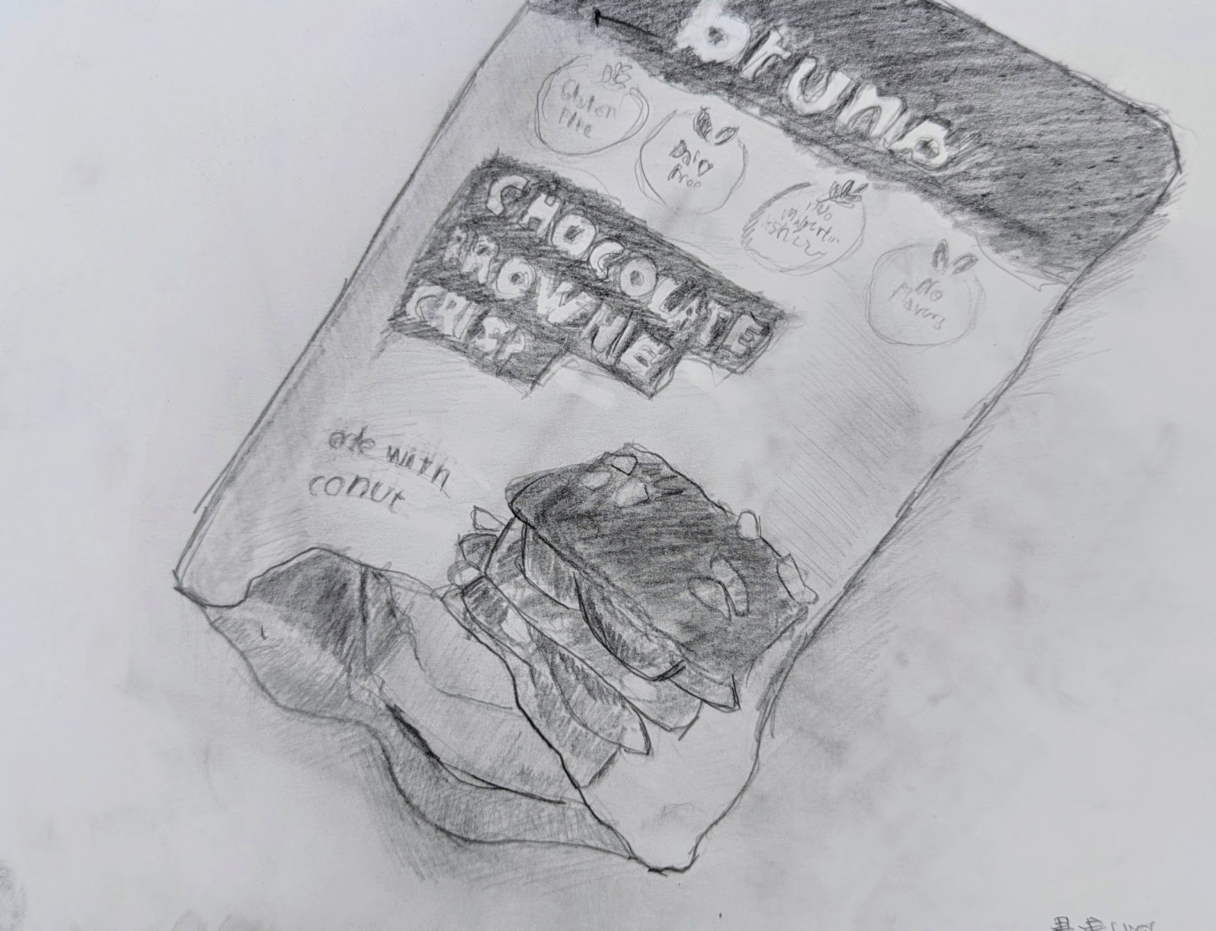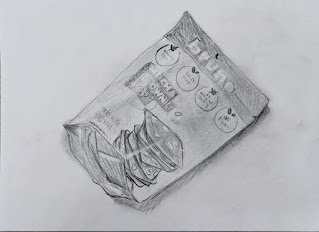 お菓子のパッケージを鉛筆デッサンしました。