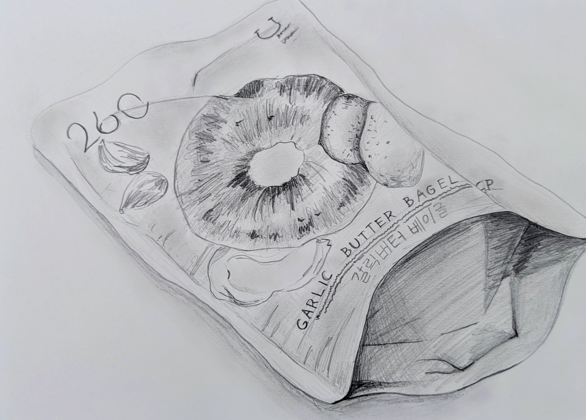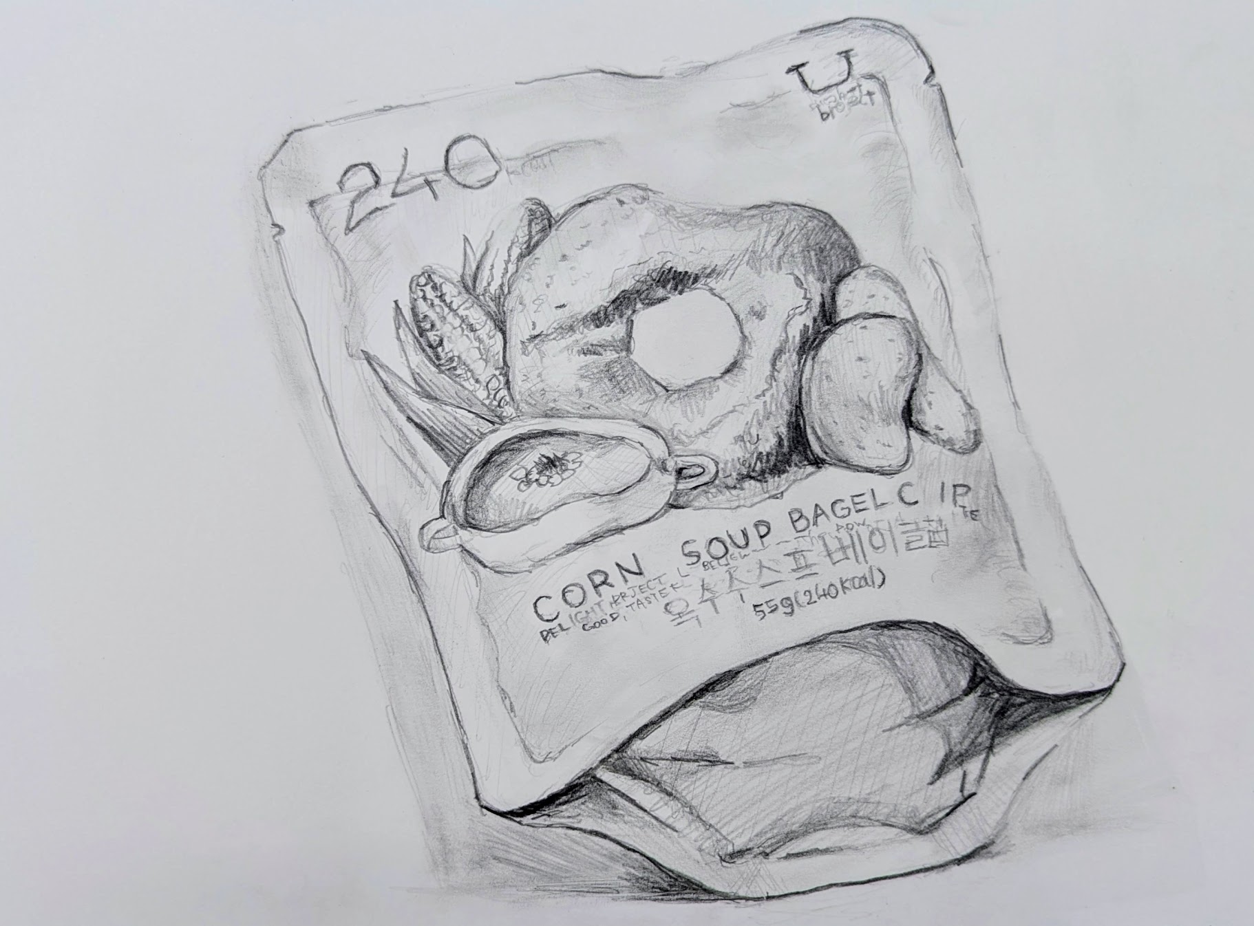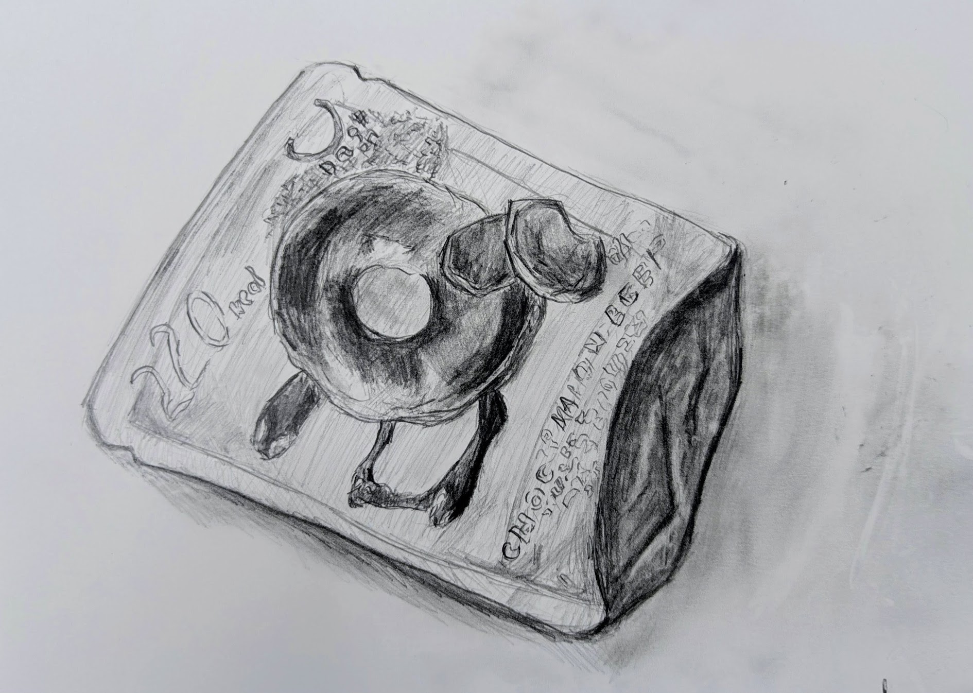お菓子のパッケージを鉛筆デッサンしました。
