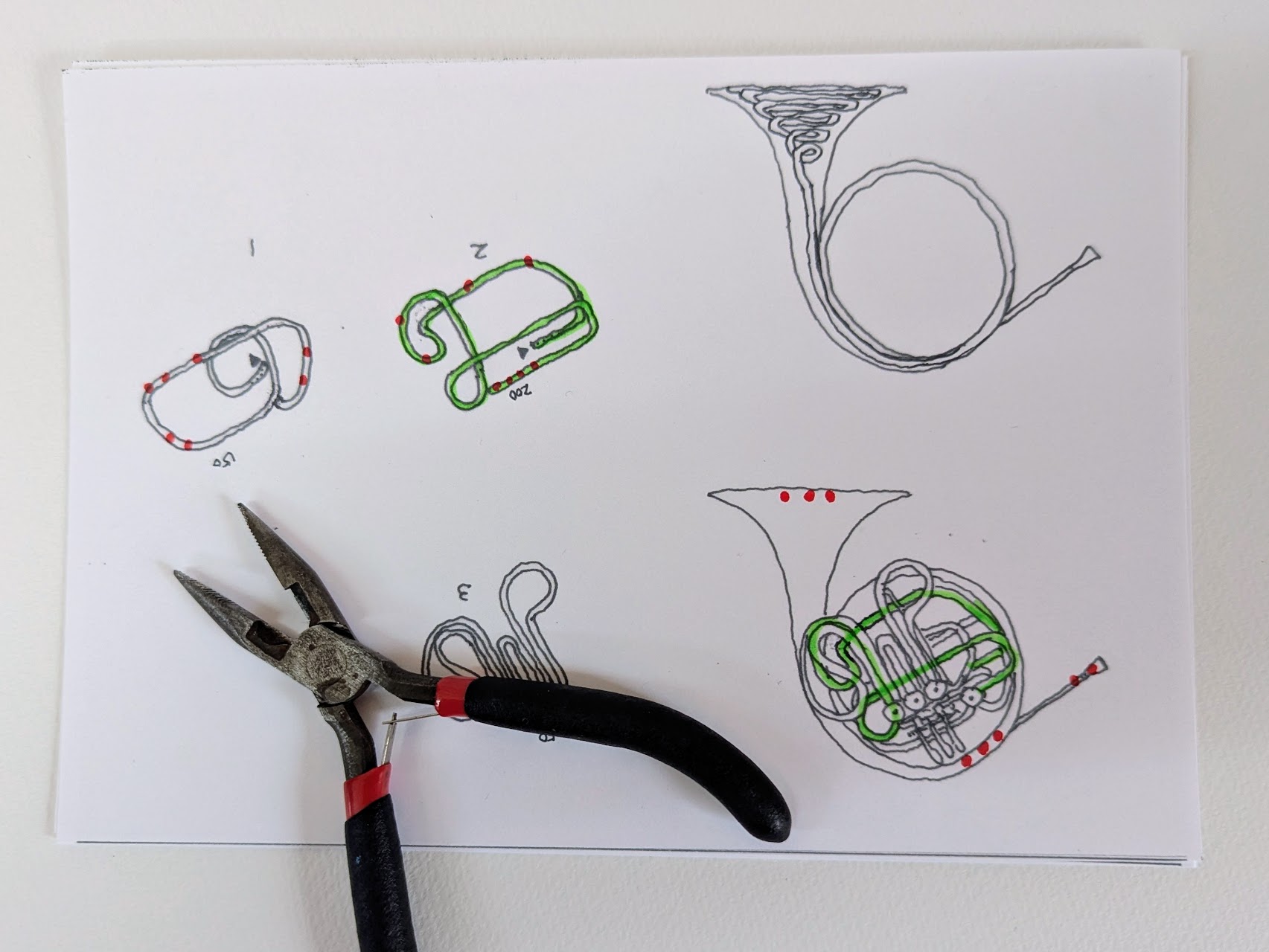 金管楽器のホルンを、アルミワイヤーを使って制作しました。