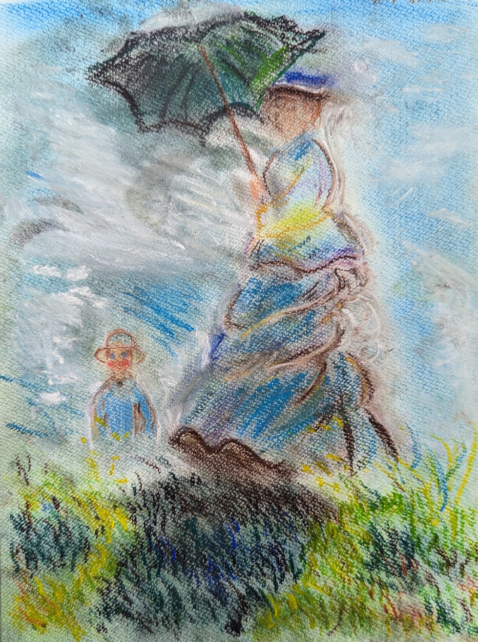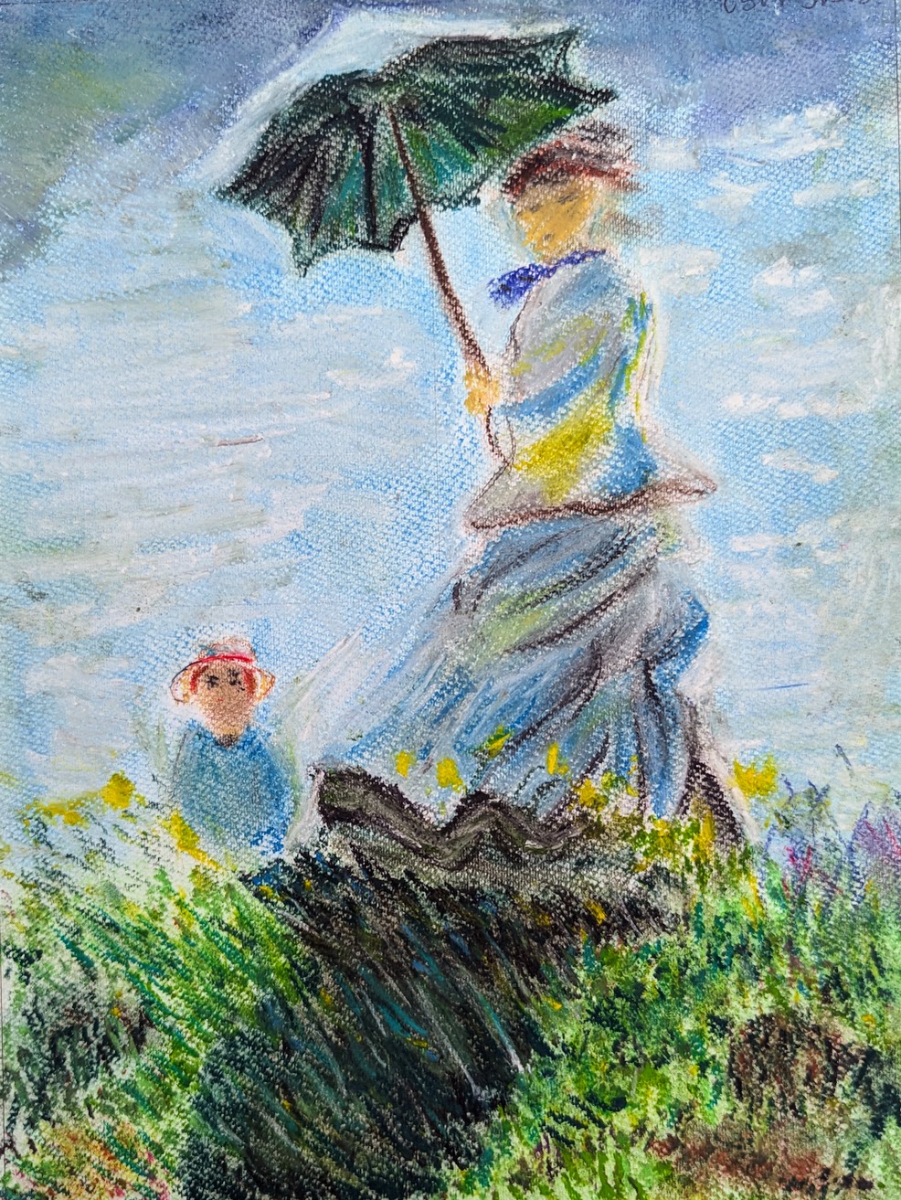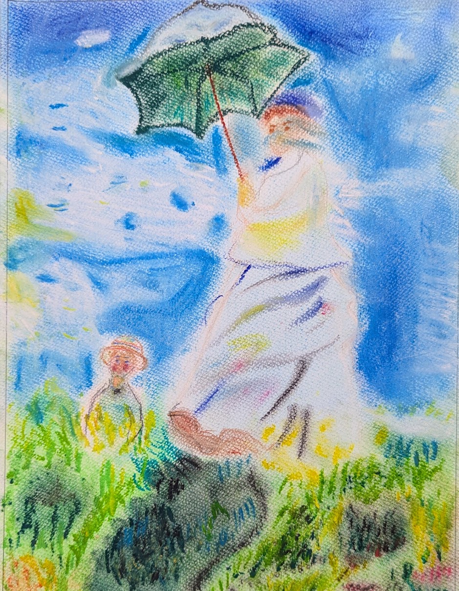 クロード・モネの「日傘をさす女」をパステルで描きました。