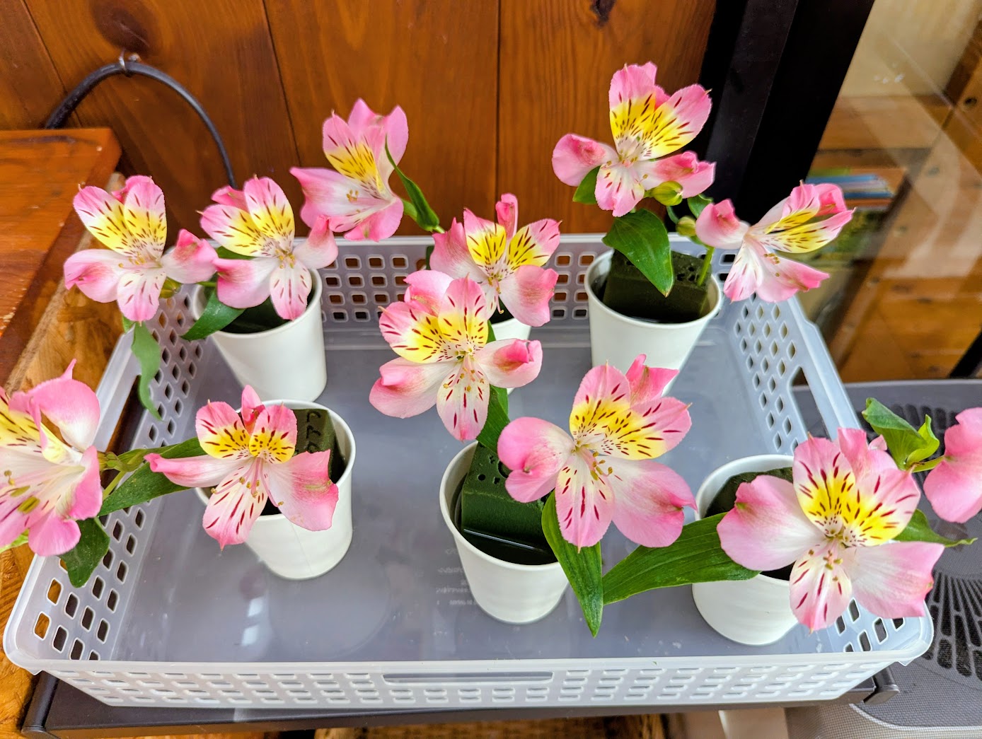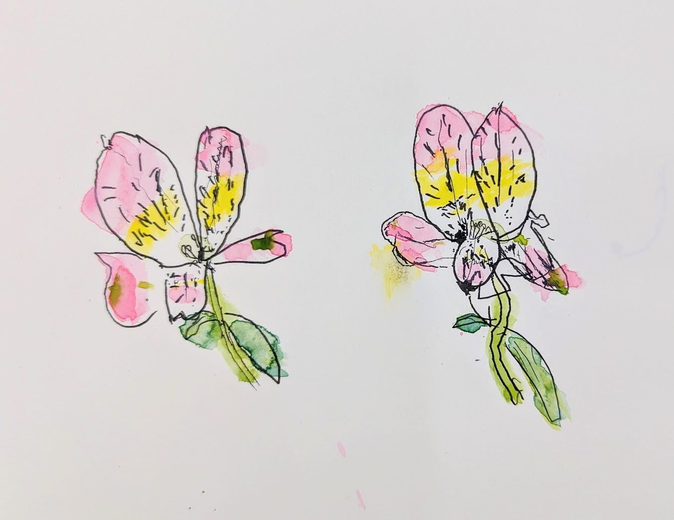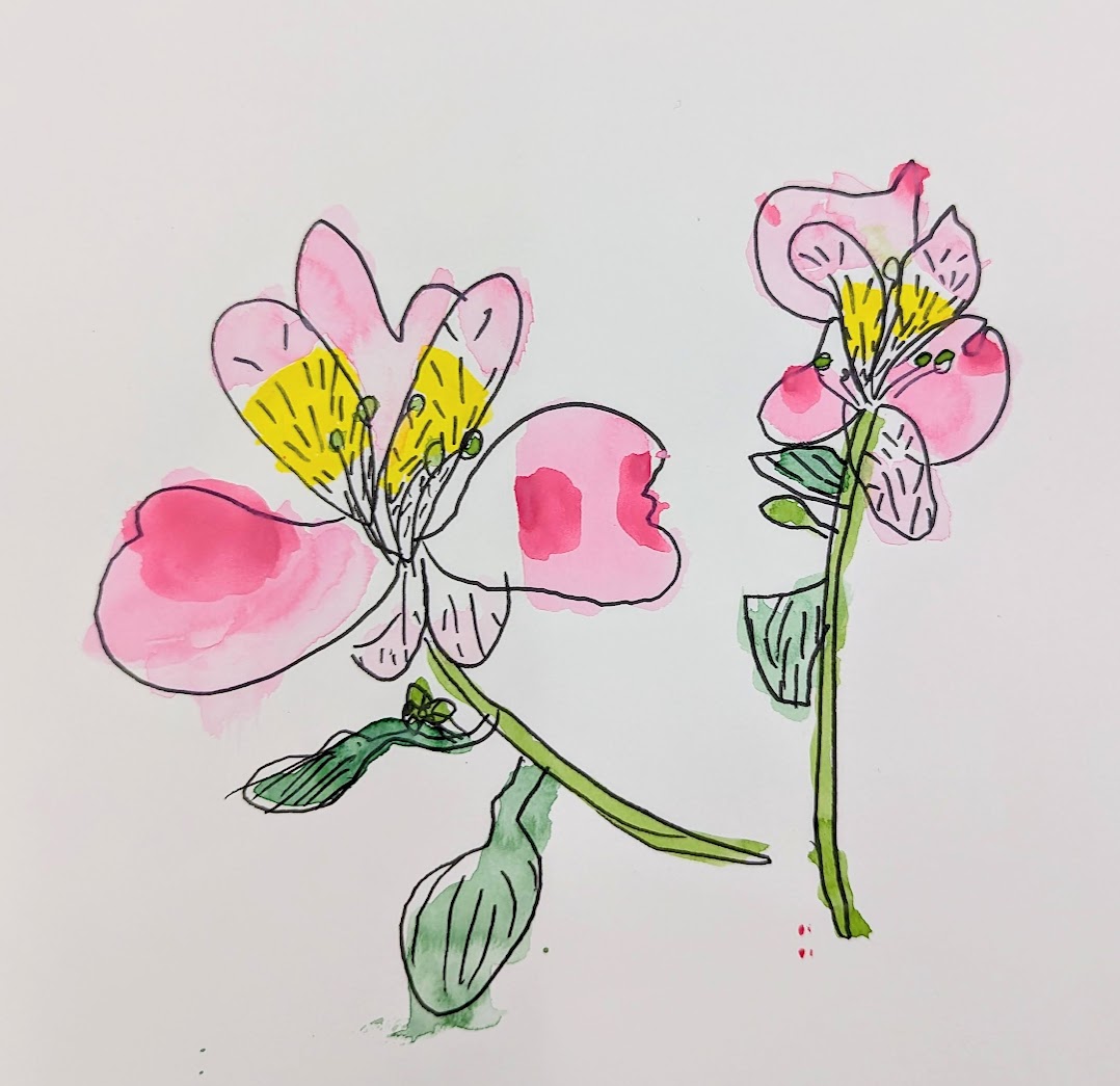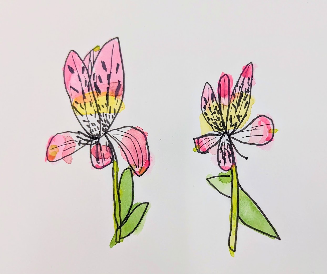 アリストロメリアの花を見て、サインペンと水彩絵の具で描きました。