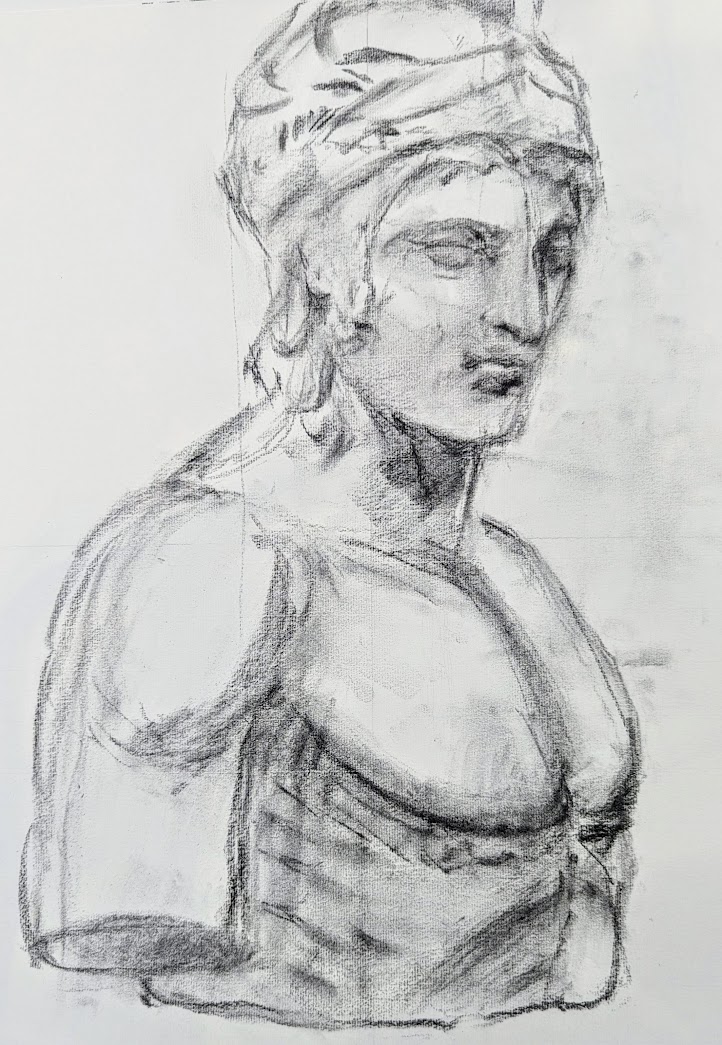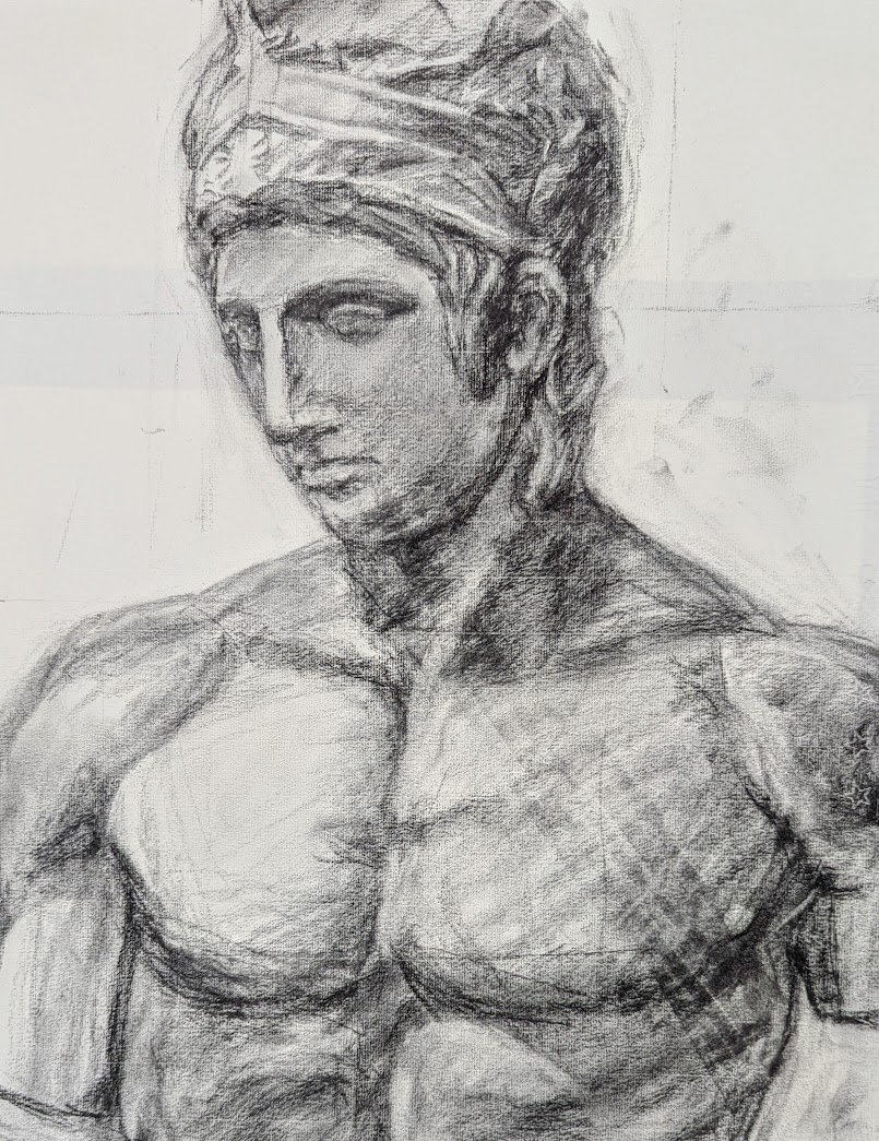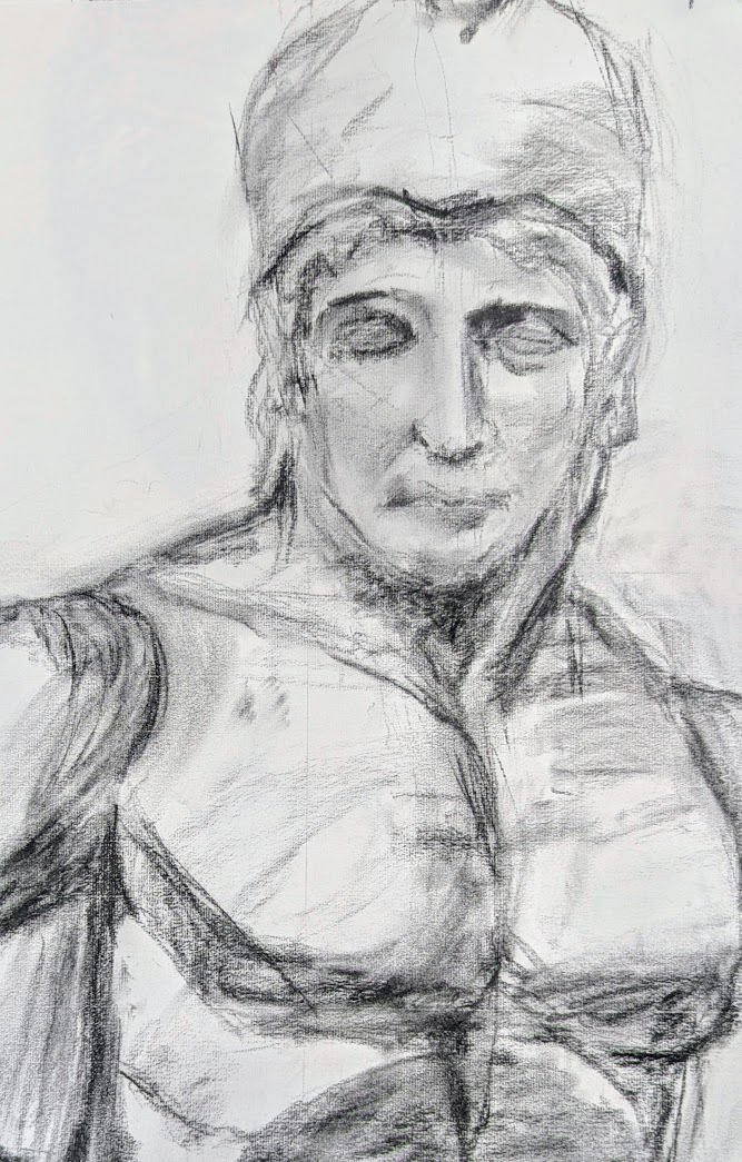 石膏像(マルス)を木炭で描きました。